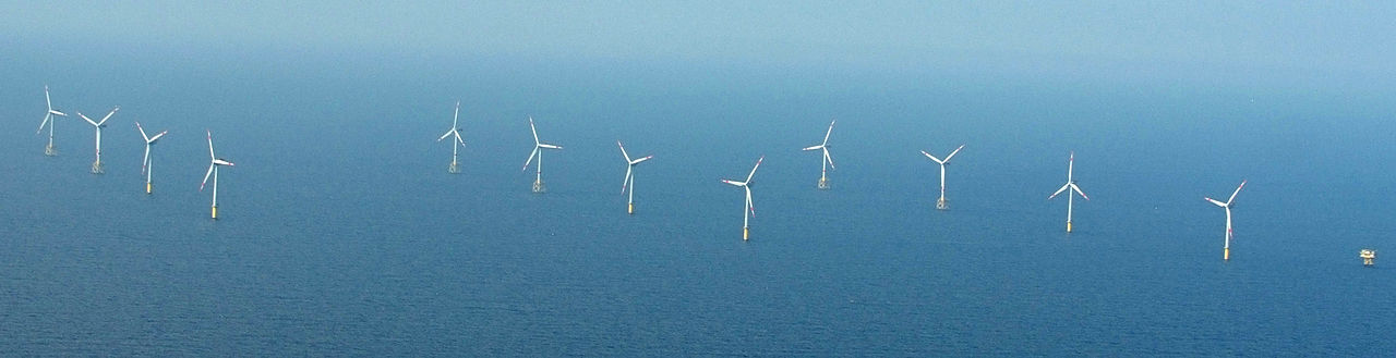 Windenergieanlagen des Offshore-Windparks February 15, 2016 1280 × 329 Windenergieanlagen des Offshore-Windparks CC BY-SA 3.0 de Wind Park in the German Bight